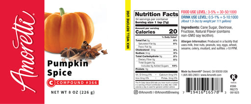 Spiced, Warm, Delightful Amoretti® Pumpkin Spice Beverage Infusion brings all the warmth and spice of Fall into your craft beverages! Enjoy the de...