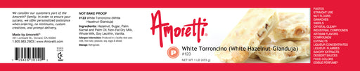 Amoretti Item 134 Thick white-nougat paste Ideal as is or in chocolate applications Proudly made in Southern California Kosher Amoretti’s White N...