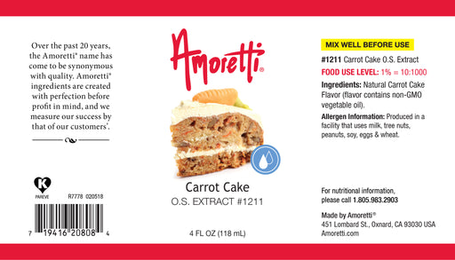 Comforting, Nutty, Flavorful Enhance your gourmet creations with Amoretti's Carrot Cake Water-Soluble Extract. A trusted choice among industry pro...