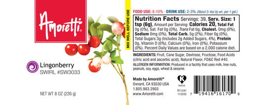 Sweet, Vibrant, Tart Amoretti’s Lingonberry Marbleizing Swirl delivers the vibrant flavor of ripe, tart lingonberries straight into all your gourm...