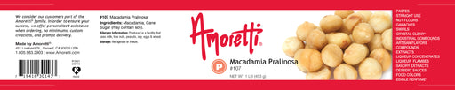 Amoretti Item #108 Lightly roasted nut-based paste No added sugar Proudly made in Southern California Kosher Amoretti’s Macadamia Praline is the ...