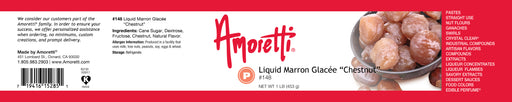 Amoretti Item #148 Chestnut-based syrup TTB – Approved Kosher Amoretti’s Liquid Marron Glacée provides the same flavors of the popular candied ch...