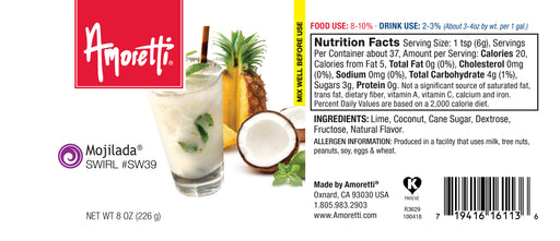 Tropical, Citrusy, Vibrant Amoretti’s Mojilada Marbleizing Swirl delivers the tropical flavor of creamy coconuts, cool mint, and zesty lime straig...