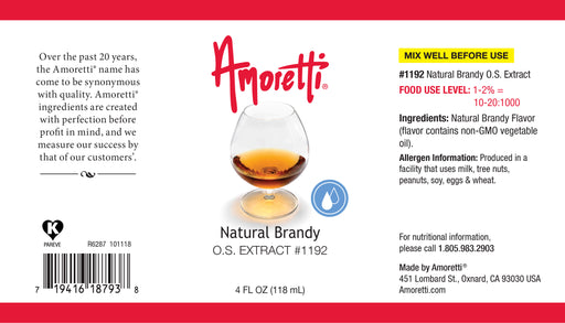 Bold, Rich, Robust Enhance your gourmet creations with Amoretti's Natural Brandy Oil-Soluble Extract. A trusted choice among industry professional...