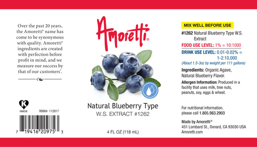 Luscious, Vibrant, Tart Enhance your gourmet creations with Amoretti's Natural Blueberry Type Water-Soluble Extract. A trusted choice among indust...