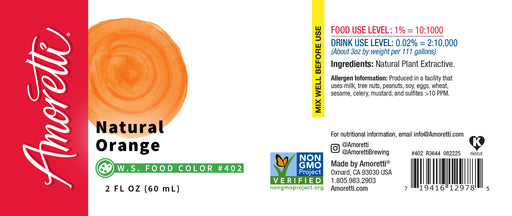 Sunny, Vibrant, Bold Amoretti’s Water-Soluble Natural Orange Food Color delivers bold, buildable color to all your gourmet creations. A vibrant pop...