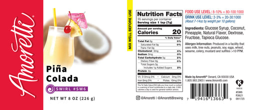 Tropical, Exotic, Refreshing Amoretti Piña Colada Beverage Infusion is a tropical blend that captures the essence of a classic piña colada cocktai...