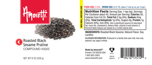 Amoretti Item #216 Dark roasted seed-based paste No added sugar Kosher Amoretti’s Roasted Black Sesame Praline is ideal for imparting a variety o...