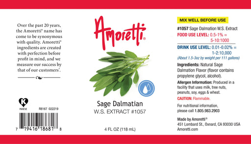 Citrusy, Woody, Fresh Enhance your gourmet creations with Amoretti's Sage Dalmatian Water-Soluble Extract. A trusted choice among industry profess...
