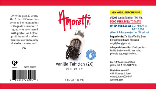 Smooth, Floral, Decadent Enhance your gourmet creations with Amoretti's Vanilla Tahitian "European Style" Water-Soluble Extract (2X). A trusted ch...