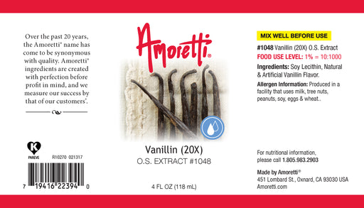 Amoretti Item #579 Highly concentrated extractions Kosher Bake-proof and freeze-thaw stable Versatile for any of your gourmet creations Vanillin...
