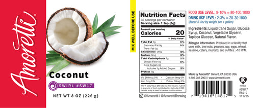 Tropical, Creamy, Sweet Amoretti’s Coconut Marbleizing Swirl delivers the tropical flavor of ripe, creamy coconuts straight into all your gourmet ...